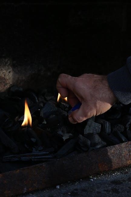 Build a fire lay – teepee‚ log cabin‚ or lean-to structures. Signal fires require adding green vegetation for smoke. Maintain a safe firebreak and never leave a fire unattended‚ ensuring survival and rescue potential.